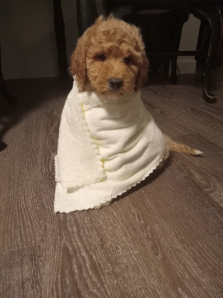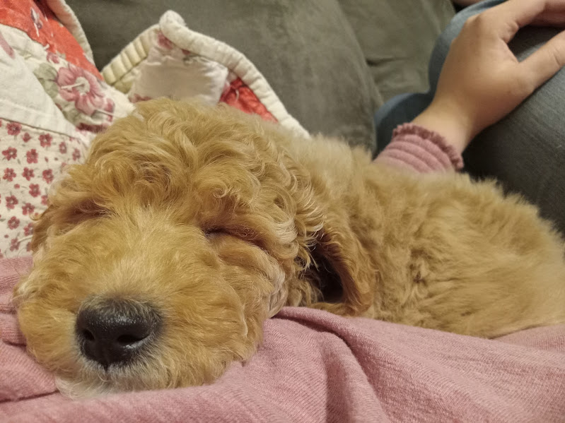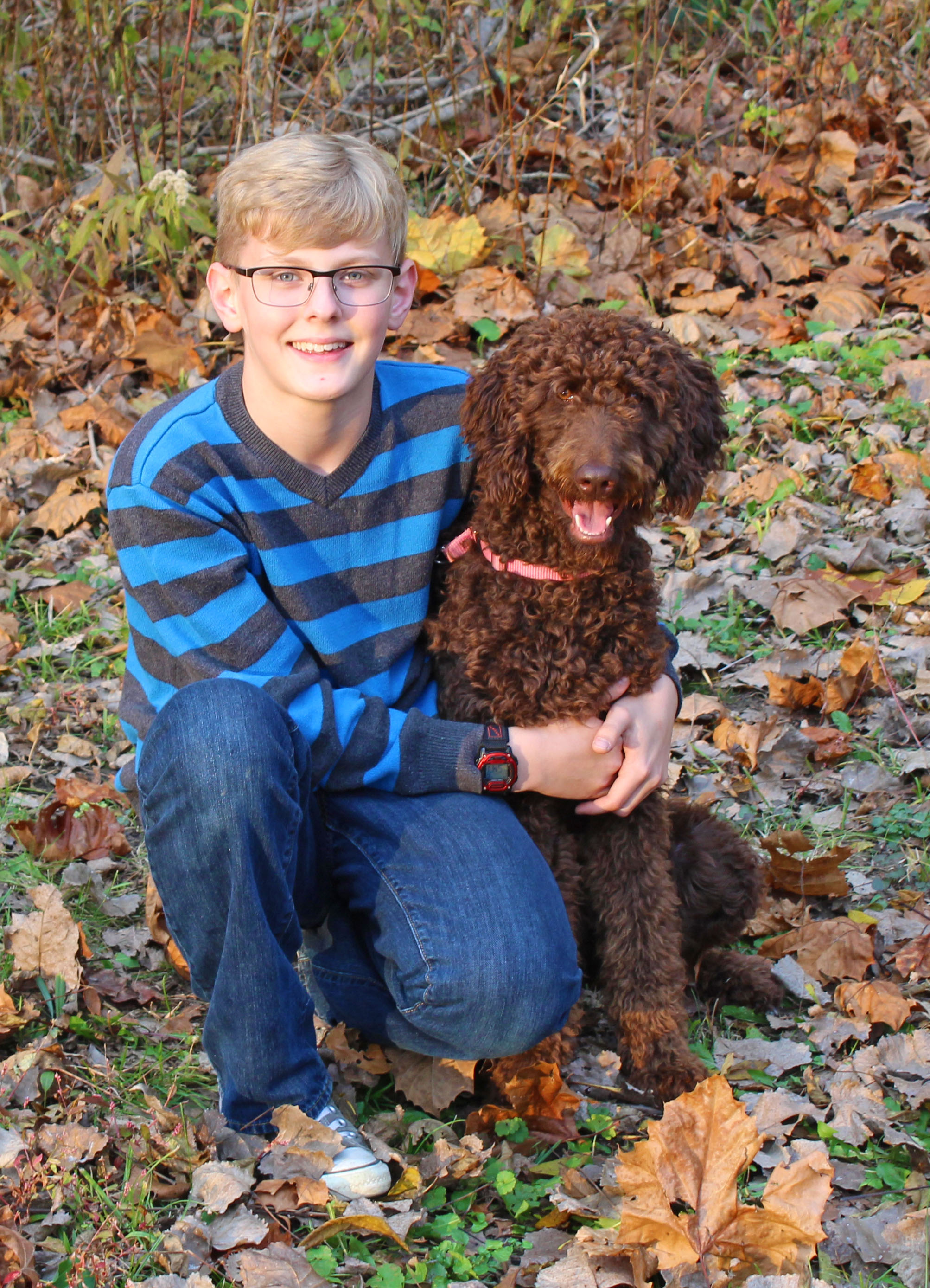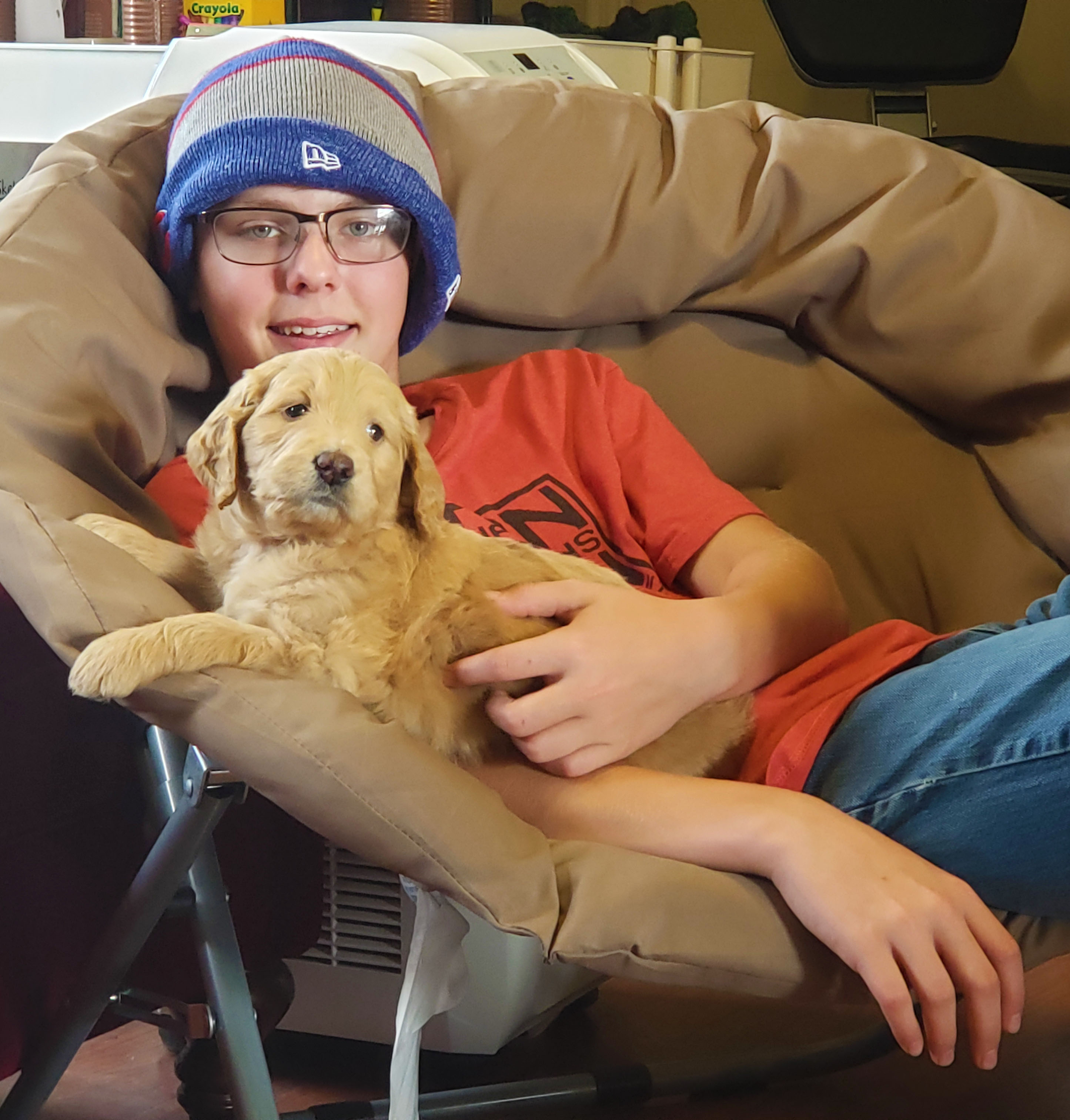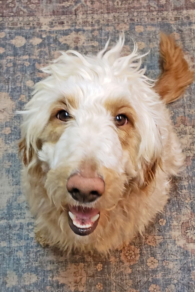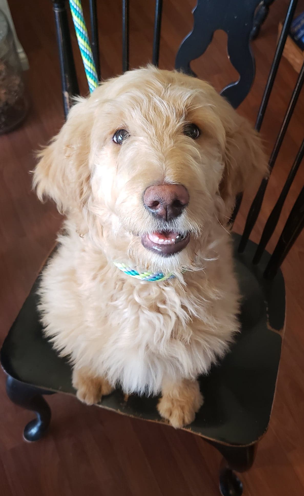 Penny is our sweet, loving Goldendoodle girl who thrives on life and her people. She is fascinated by nature and the other animals at home, especially the chickens. She eagerly seeks to please and is social with everyone she meets. We love her loyal personality and overall happy temperament.